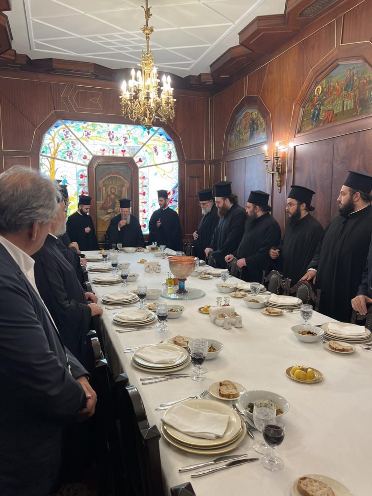 Στη συνέχεια, ο κ. Ησαΐας και η συνοδεία του παρακάθισαν μετά του Οικουμενικού Πατριάρχου στην Πατριαρχική τράπεζα και έγινε ανταλλαγή δώρων.
