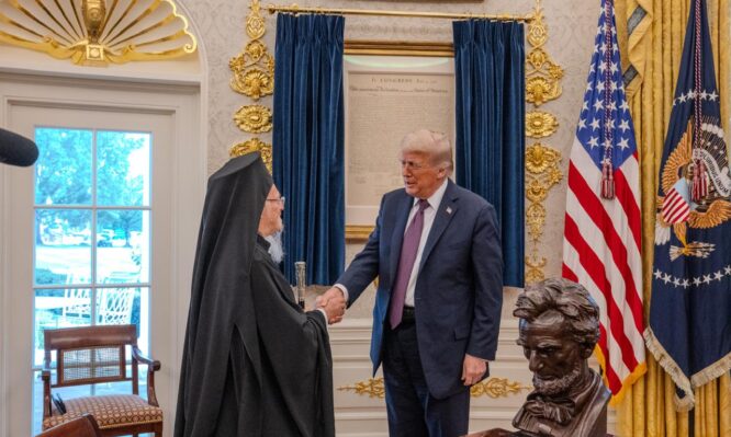 Τη Δευτέρα, 15 Σεπτεμβρίου 2025, η Α.Θ. Παναγιότης ο Οικουμενικός Πατριάρχης κ.κ. Βαρθολομαίος συναντήθηκε στον Λευκό Οίκο με τον Εξοχ. κ. Donald J. Trump, Πρόεδρο των Ηνωμένων Πολιτειών της Αμερικής, ο οποίος είναι ο έκτος Πρόεδρος που επισκέπτεται.  Η συνάντηση στο Οβάλ Γραφείο, η οποία διήρκεσε περισσότερο από μισή ώρα, διεξήχθη σε πολύ εγκάρδια ατμόσφαιρα, […]
