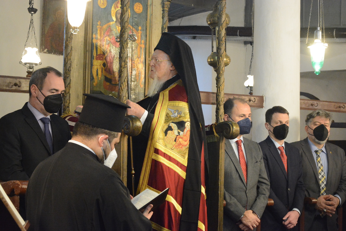 Στην ομιλία του ο Οικουμενικός Πατριάρχης αναφέρθηκε και στην ένταση που υπάρχει αυτή την στιγμή στην ανατολική Ευρώπη και ευχήθηκε να επικρατήσει η ειρήνη.