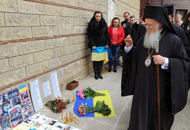 Τρισάγιο για όσους έχασαν πρόσφατα τη ζωή τους κατά τη διάρκεια των αιματηρών συγκρούσεων στην πλατεία ανεξαρτησίας του Κιέβου τέλεσε χθες ο Οικουμενικός Πατριάρχης κ. Βαρθολομαίος.