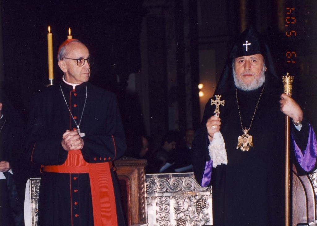 Κατά την επίσκεψη του Αρμενίου Πατριάρχη στην Αργεντινή τον Απρίλιο του 2004 (φωτογραφία πάνω) ο τότε Καρδινάλιος Μπερκόλιο σε μια οικουμενική προσευχή μίλησε για τα θύματα της Γενοκτονία των Αρμενίων.
