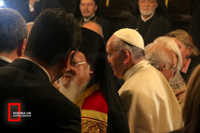 Στο ίδιο μήκος κύματος με τον Πατριάρχη, κινήθηκε και ο Πάπας ο οποίος δεν έκρυψε την ιδιαίτερη ικανοποίηση του για το γεγονός οτι βρίσκεται στο Φανάρι.