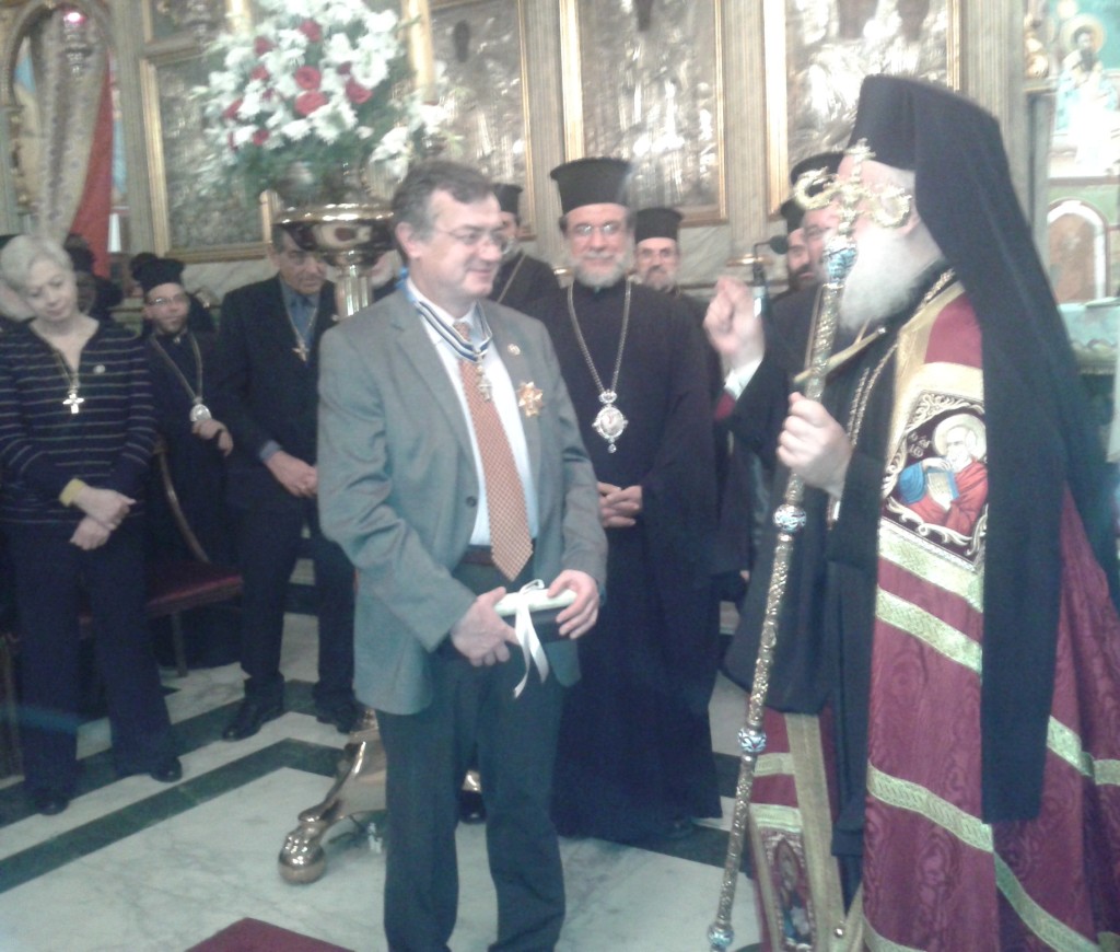 Το παράσημο του Ανώτατου Ταξιάρχη, του Πατριαρχείου Αλεξανδρείας, απένειμε σήμερα το πρωί στον υφυπουργό Εξωτερικών κ. Άκη Γεροντόπουλο ο Πατριάρχης Αλεξανδρείας κ. Θεόδωρος.