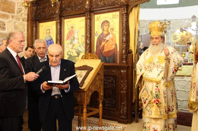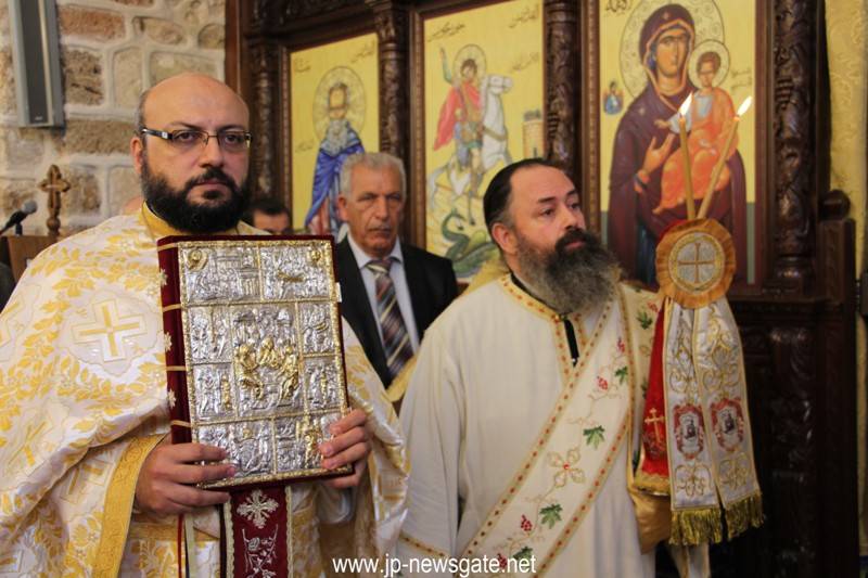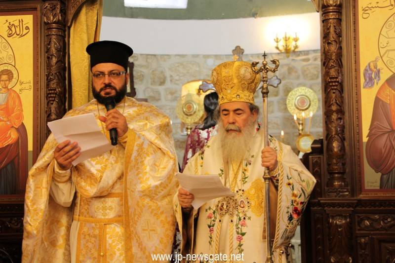 Εἰς τήν Ἑλληνορθόδοξον Κοινότητα τῆς ὡς ἄνω κώμης ἐγένετο δεκτός ἐν ἐπισήμῳ ὑποδοχῇ ὁ Μακαριώτατος καί ἐτέλεσε τήν θείαν Λειτουργίαν, συλλειτουργούντων Αὐτῷ τοῦ Σεβασμιωτάτου Μητροπολίτου Ναζαρέτ κ. Κυριακοῦ, τοῦ Γέροντος Ἀρχιγραμματέως Ἀρχιεπισκόπου Κωνσταντίνης κ. Ἀριστάρχου, Ἁγιοταφιτῶν Ἱερομονάχων, ὡς τοῦ Ἀρχιμανδρίτου π. Ἱλαρίωνος ἡγουμένου τῆς Ἱ. Μονῆς Θαβώρ, τοῦ Ἀρχιμανδρίτου π. Χρυσοστόμου ἡγουμένου τῆς Ἱερᾶς Μονῆς Κανᾶ τῆς Γαλιλαίας, Ἀραβοφώνων Πρεσβυτέρων τῶν Κοινοτήτων τῆς περιοχῆς Ἄκκρης – Πτολεμαΐδος, τοῦ διακόνου Μάρκου καί τοῦ διακόνου Ἀναστασίου, ψάλλοντος τοῦ Ἀρχιμανδρίτου Φιλοθέου ἡγουμένου τῆς Ἄκκρης – Πτολεμαΐδος ἐν χορῳδία ἀραβιστί καί ἑλληνιστί καί μετέχοντος ἐν κατανύξει καί εὐλαβεῖ προσευχῇ πυκνοῦ Ὀρθοδόξου ἐκκλησιάσματος παρουσίᾳ τῆς καθηγητρίας τοῦ Ε.Μ.Π. κ. Ἀντωνίας Μοροπούλου.