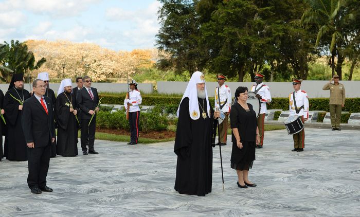 Ο Πατριάρχης Κύριλλος κατέθεσε στεφάνι στο μνημείο που είναι αφιερωμένο στους σοβιετικούς στρατιώτες και βρίσκεται στην Αβάνα. Το μνημείο αυτό δημιουργήθηκε με την υποστήριξη του Φιντέλ Κάστρο το 1978, κατά την 60η επέτειο των Ενόπλων Δυνάμεων της ΕΣΣΔ.
