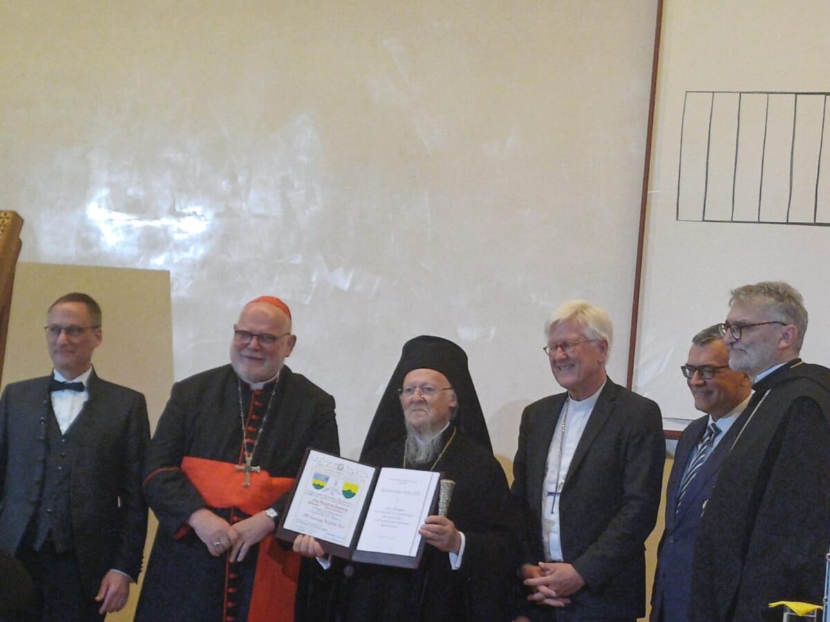 Κατά τήν μεγαλειώδη τελετή πού ἀκολούθησε, μίλησαν μέ τή σειρά οἱ ἐπί κεφαλῆς τῶν δύο Ἱδρυμάτων πού τίμησαν τόν Οἰκουμενικό Πατριάρχη, Ἐλλογιμ. Δρ. Achim Budde, Διευθυντής τῆς Ἀκαδημίας, καί Πανοσιολ. Δρ. Marianus Bieber, Ἡγούμενος τῆς Μονῆς Niederaltaich, ὁ Ὑπουργός Ἐπικρατείας τῆς Βαυαρικῆς Κυβερνήσεως, ἁρμόδιος διά ζητήματα Ὁμοσπονδίας καί Μέσων Ἐνημερώσεως, Ἐξοχ. Δρ. Florian Herrmann, ὁ Εὐαγγελικός Ἐπίσκοπος Καθηγητής Heinrich Bedford-Strohm, Πρόεδρος τῆς Κεντρικῆς Ἐπιτροπῆς τοῦ Π.Σ.Ε., ὁ ὁποῖος ἔκανε τόν Ἔπαινο (Laudatio) τοῦ τιμωμένου, ὅλοι ἐξάραντες διά θερμῶν λόγων τήν προσωπικότητα καί τό ἔργο τοῦ Πατριάρχου. Ἐν συνεχείᾳ, ὁ Παναγιώτατος ἐκφώνησε τήν ἐπίσημη ὁμιλία του γερμανιστί, καταχειροκροτηθείς. Τήν τελετή, μετά τήν ὁποία παρετέθη δεξίωσις, κατέκλεισε ὁ Σεβ. Καρδινάλιος Marx, ἐπίσης μέ λίαν ἐπαινετικούς λόγους διά τόν τιμώμενον Προκαθήμενον τῆς Ὀρθοδοξίας.
