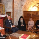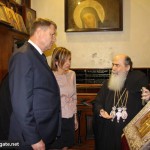 Τόν ἐξοχώτατον Πρόεδρον τῆς Ρουμανίας καί τήν συνοδείαν αὐτοῦ ὑπεδέχθη ἐνθέρμως ἡ Α.Θ.Μ. ὁ Πατήρ ἡμῶν καί Πατριάρχης Ἱεροσολύμων κ.κ. Θεόφιλος καί Ἁγιοταφῖται Πατέρες εἰς τήν αἴθουσαν τοῦ Πατριαρχείου, ἀφ’ οὗ παρέλαβον αὐτόν ἐκ τῆς Πύλης τοῦ Δαυΐδ ὁ Πατριαρχικός Ἐπίτροπος Σεβασμιώτατος Μητροπολίτης Καπιτωλιάδος κ. Ἡσύχιος καί ὁ Ἀρχιμανδρίτης Πορφύριος.