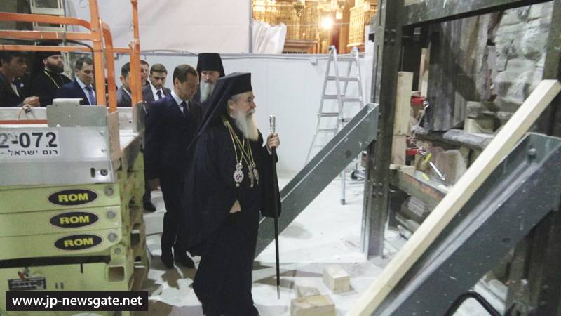 Ο Πρωθυπουργός της Ρωσίας Ντμίτρι Μεντβέντεφ, ξεναγήθηκε από τον Πατριάρχη Ιεροσολύμων κ. Θεόφιλο στις εργασίες που επιτελούνται για την αποκατάσταση του Ιερού Κουβουκλίου Παναγίου Τάφου.