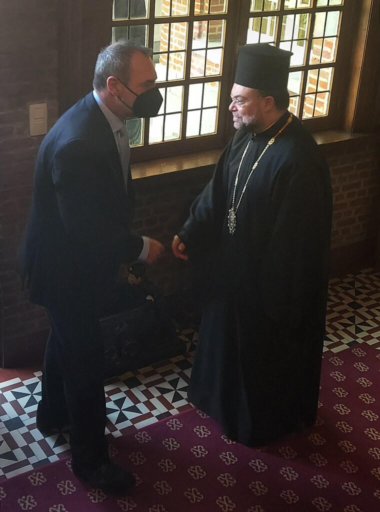 Εθιμοτυπική επίσκεψη στην έδρα της Ιεράς Μητροπόλεως Βελγίου, στις Βρυξέλλες, πραγματοποίησε ο Έλληνας Υφυπουργός αρμόδιος για τον Απόδημο Ελληνισμό κ. Ανδρέας Κατσανιώτης, το πρωί της 22ας Μαρτίου 2022.