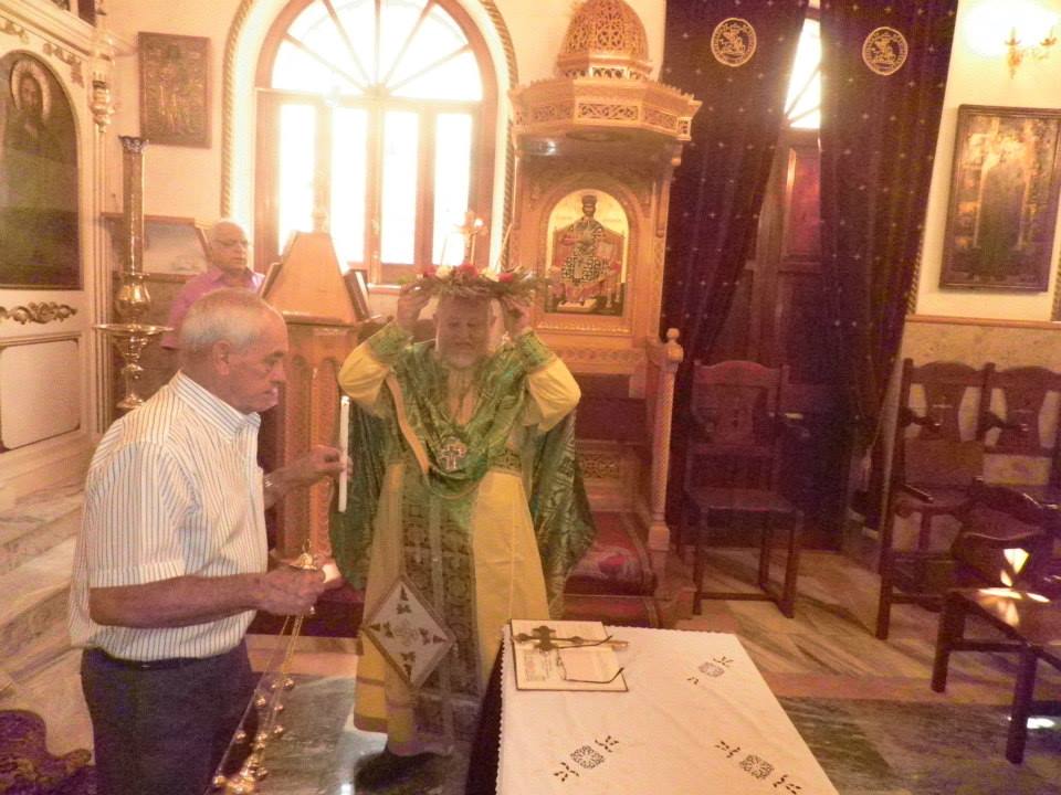 Τη Θεία Λειτουργία τέλεσε ο Πρωτοσύγκελλος της Μητρόπολης Τριπόλεως Αρχιμανδρίτης Χρυσόστομος Καραγκούνης, ο οποίος μοίρασε στους λιγοστούς Έλληνες που ζουν στην περιοχή βασιλικό από τον δίσκο του Σταυρού.