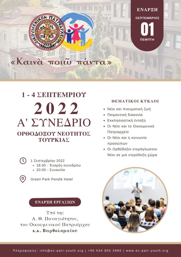 Τό Συνέδριον θά λάβῃ χώρα εἰς τήν Κωνσταντινούπολιν ἀπό τήν 31ην Αυγούστου μέχρι τήν 4ην Σεπτεμβρίου 2022. Ἐν αὐτῷ θά συμμετέχουν ὅσον τό δυνατόν περισσότεροι Ὀρθόδοξοι νέοι, πού ζοῦν ἐν Τουρκίᾳ, διαφόρων ἐθνικοτήτων, ὡς ποίμνιον τοῦ Οικουμενικοῦ Πατριαρχείου καί τῶν Μητρο¬πόλεών του. Πρόεδρος τῆς ἐπιτροπής καί τοῦ Συνεδρίου ὡρίσθη ὑπό τῆς Α. Θ. Παναγιότητος, ὁ Σεβ. Μητροπολίτης Ἴμβρου καί Τενέδου κ. Κύριλλος.
