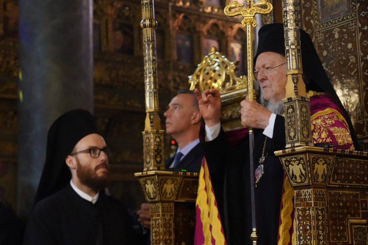 Στην Θεία Λειτουργία προεξήρχε η Α.Θ. Παναγιότης ο Οικουμενικός Πατριάρχης κ.κ. Βαρθολομαίος συμπαραστατούμενος από τους Σεβ. Μητροπολίτες Γέροντα Χαλκηδόνος κ. Εμμανουήλ, Μυριοφύτου και Περιστάσεως κ. Ειρηναίο, Ικονίου κ. Θεόληπτο, Σαράντα Εκκλησιών κ. Ανδρέα, Προύσης κ. Ιωακείμ, και Σελευκείας κ. Θεόδωρο.