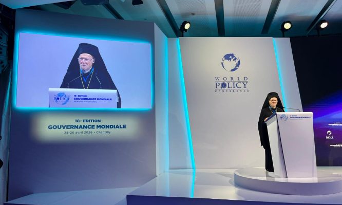 Τη σημασία διαφύλαξης της ειρήνης και της κοινωνικής δικαιοσύνης στο σημερινό παγκόσμιο περιβάλλον που κλονίζεται, υπογράμμισε η Α.Θ. Παναγιότης ο Οικουμενικός Πατριάρχης κ.κ. Βαρθολομαίος την Παρασκευή, 24 Απριλίου 2026, στην επίσημη ομιλία του στον 18ο κύκλο του Διεθνούς Συνεδρίου “World Policy Conference”, που πραγματοποιείται στην πόλη Chantilly της Γαλλίας.  Απευθυνόμενος στο πολυπληθές ακροατήριο του Συνεδρίου, […]