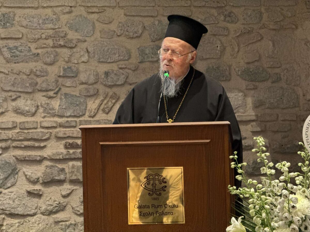 Η Α.Θ. Παναγιότης ο Οικουμενικός Πατριάρχης κ.κ. Βαρθολομαίος παρέστη και απηύθυνε χαιρετισμό στην εκδήλωση του Γενικού Προξενείου της Ελλάδος για τον εορτασμό της Παγκόσμιας Ημέρας της Ελληνικής Γλώσσας, το απόγευμα της Τρίτης, 11 Φεβρουαρίου 2025, στο Πολιτιστικό Κέντρο της Ομογενείας στο ιστορικό κτήριο της Αστικής Σχολής Γαλατά, κατά την οποία την κεντρική ομιλία πραγματοποίησε η Ελλογιμ. κ. Μαρία Ευθυμίου, ιστορικός και ομότιμη καθηγήτρια πανεπιστημίου.