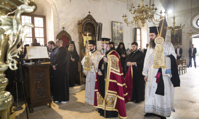 Την Κυριακή, 22 Οκτωβρίου, εορτή των εν Εφέσῳ επτά Παίδων και της Συνάξεως πάντων των Αγίων Ιατρών, τελέστηκε στην Ιερά Πατριαρχική και Σταυροπηγιακή Μονή Αρκαδίου Τρισαρχιερατική Θεία Λειτουργία, προεξάρχοντος του Σεβασμιωτάτου Αρχιεπισκόπου Αυστραλίας κ.κ. Μακαρίου και συλλειτουργούντων των Σεβασμιωτάτων Μητροπολιτών Μεσογαίας και Λαυρεωτικής κ. Νικολάου και Νέας Ζηλανδίας κ. Μύρωνος,  πρεσβυτέρων και διακόνων και με τη συμμετοχή των Συνέδρων και πολλών πιστών. Συμπροσευχήθηκαν ο Σεβασμιώτατος Μητροπολίτης Ρεθύμνης και Αυλοποτάμου κ. Πρόδρομος και ο Θεοφιλέστατος Επίσκοπος Δαφνουσίας κ. Σμάραγδος, ενώ τον Χορό διηύθυνε ο Άρχων Πρωτοψάλτης της Αγιωτάτης Αρχιεπισκοπής Κωνσταντινουπόλεως κ. Φώτιος Γιαννακάκης. Τον θείο λόγο κήρυξε ο Σεβασμιώτατος Μητροπολίτης Πέτρας και Χερρονήσου κ. Γεράσιμος, ο οποίος ανέλυσε την ευαγγελική περικοπή της ημέρας και συνέδεσε την εορτή της Συνάξεως πάντων των Αγίων Ιατρών με τη λήξη των εργασιών του 1ου Συνεδρίου Βιοηθικής του Οικουμενικού Πατριαρχείου και τη μέριμνα της Μητρός Εκκλησίας για την προστασία του ανθρωπίνου προσώπου, ενώ αναφέρθηκε εκτενώς και στην 32α επέτειο της εκλογής του Οικουμενικού Πατριάρχου κ.κ. Βαρθολομαίου στον Αποστολικό Θρόνο της Κωνσταντινουπόλεως.