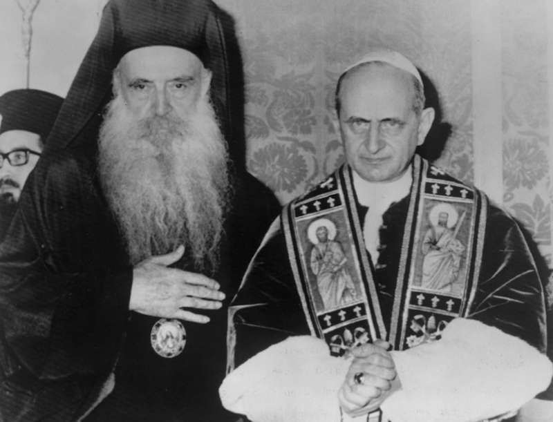 Δύο Προκαθήμενοι: ο διάδοχος του Αποστόλου Πέτρου, Πάπας της Ρώμης Παύλος Στ΄, και ο διάδοχος του Αποστόλου Ανδρέα, Πατριάρχης Κωνσταντινουπόλεως και Νέας Ρώμης Αθηναγόρας Α΄, αναλαμβάνουν να σηκώσουν στις πλάτες τους το βαρύ φορτίο της Άρσης των Αναθεμάτων, χίλια και πλέον χρόνια μετά τα όσα τραγικά συνέβησαν στον Ναό της Αγίας του Θεού Σοφίας της Κωνσταντινούπολης.