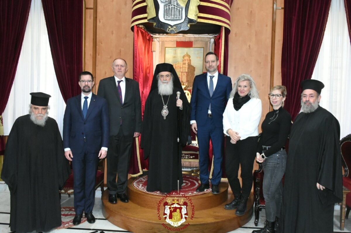 Ὁ ἀξιότιμος κ. Tristan Azbej, Οὗγγρος Ὑφυπουργός Κράτους διά τήν βοήθειαν τῶν διωκομένων Χριστιανῶν καί τό Πρόγραμμα «Ἡ Οὑγγαρία Βοηθᾷ», συνηντήθη μετά τοῦ Μακαριωτάτου Πατριάρχου Ἱεροσολύμων, διά νά συζητήσουν τήν τρέχουσαν κατάστασιν τῶν Χριστιανῶν τῆς Ἁγίας Γῆς, τάς προκλήσεις πού ἀντιμετωπίζουν αἱ Ἐκκλησίαι καί αἱ Κοινότητες, λόγῳ τῆς συνεχιζομένης συγκρούσεως καί τῆς πολιτικῆς καί οἰκονομικῆς ἀσταθείας, πληττούσης τήν περιοχήν.