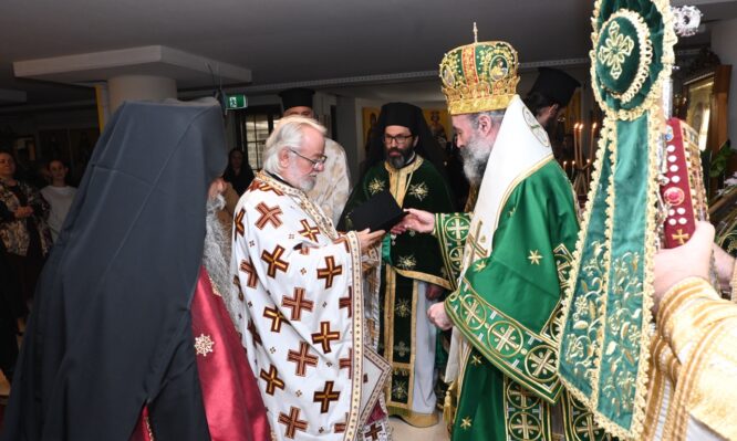 Την Ιερά Μονή Τιμίου Σταυρού, στην περιοχή Mangrove Mountain της Νέας Νοτίου Ουαλίας,  επισκέφθηκε το Σάββατο, 14 Σεπτεμβρίου, ο Σεβασμιώτατος Αρχιεπίσκοπος Αυστραλίας κ.κ. Μακάριος με αφορμή την εορτή της Υψώσεως του Τιμίου και Ζωοποιού Σταυρού. Ο Σεβασμιώτατος χοροστάτησε στον Όρθρο και στην τελετή της Υψώσεως του Τιμίου Σταυρού και, εν συνεχεία, προεξήρχε της Θείας Λειτουργίας, στο τέλος της οποίας χειροθέτησε σε Πρωτοπρεσβύτερο τον π. Νικόλαο Σκορδίλη, Ιερατικώς Προϊστάμενο της Ενορίας Αγίων Αποστόλων Newcastle.