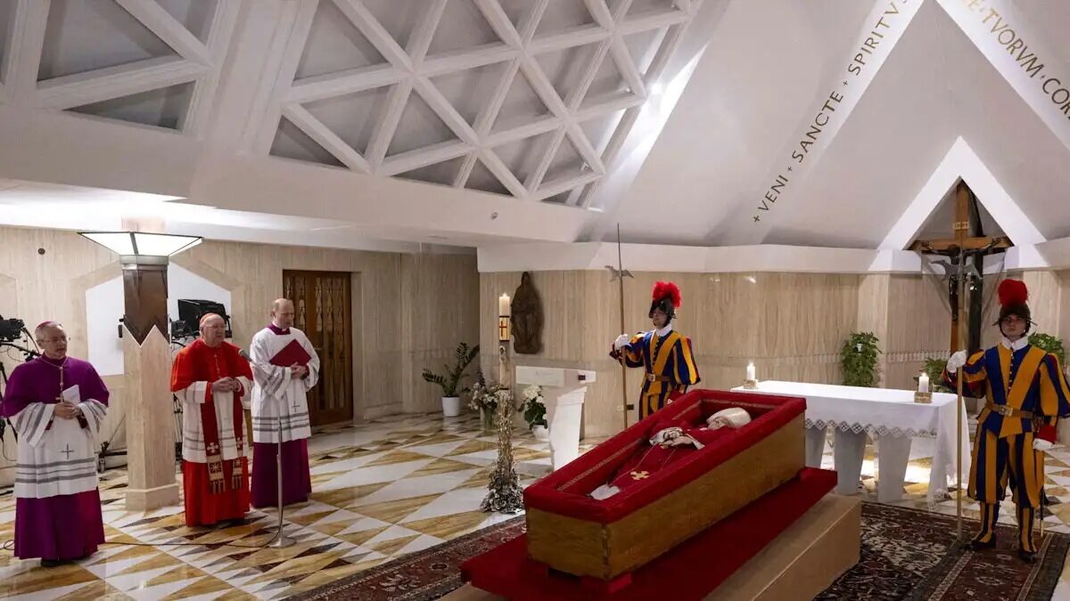 Η σορός του βρίσκεται αυτή τη στιγμή σε ένα φέρετρο στο παρεκκλήσι της κατοικίας Santa Marta, όπου έζησε κατά τη διάρκεια της 12χρονης παποσύνης του.