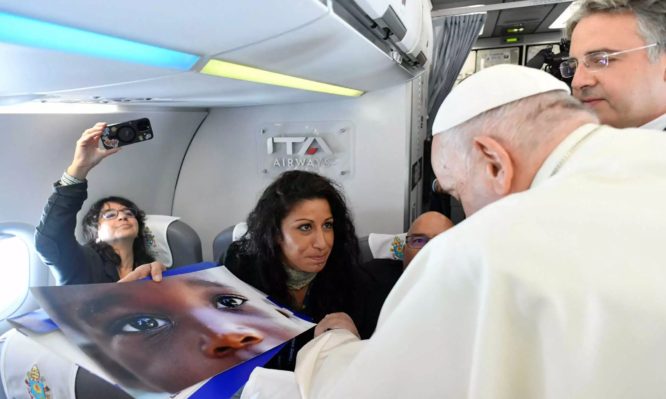 Ο πάπας Φραγκίσκος συγκινήθηκε όταν η φωτορεπόρτερ του πρακτορείου Reuters Γιάρα Νάρντι του έδειξε τη φωτογραφία ενός βρέφους στη Λαμπεντούζα, ενώ πετούσε προς τη Μασσαλία για να συμμετάσχει σε μια σύνοδο.