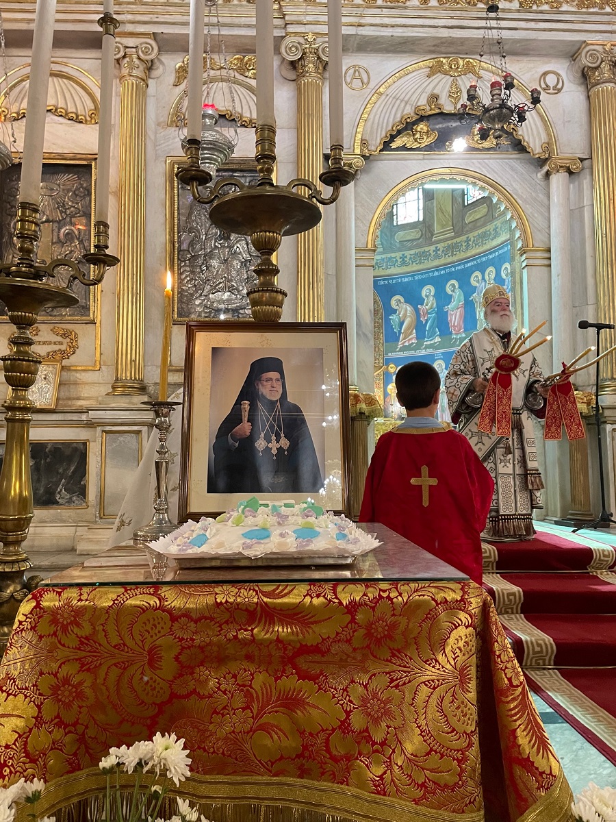 Προ του πέρατος της Θείας Λειτουργίας ο Μακαριώτατος, συμπαραστατούμενος από τους Σεβ.Μητροπολίτες Ναυκράτιδος κ.Παντελεήμονα, Αρχιγραμματέα της Ιεράς Συνόδου, Πηλουσίου κ.Νάρκισσο, Πατριαρχικό Επίτροπο Αλεξανδρείας και Ταμιάθεως κ.Γερμανό, Προϊστάμενο της Ιεράς Μονής Οσίου Σάββα Αλεξανδρείας, ετέλεσε ιερό μνημόσυνο υπέρ αναπαύσεως των ψυχών του μακαριστού Προκατόχου του, Πάπα και Πατριάρχου Αλεξανδρείας κυρού Πέτρου Ζ’ και των μελών της συνοδείας του, οι οποίοι έχασαν την ζωή τους κατά την αεροπορική τραγωδία της 11ης Σεπτεμβρίου 2004.
