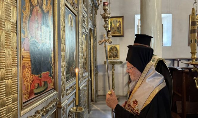 Ο Οικουμενικός Πατριάρχης κ.κ. Βαρθολομαίος, πληροφορηθείς τον αιφνίδιο θάνατο του αειμνήστου Άρχοντος της Μ.τ.Χ.Ε. Χρυσοστόμου Σταμούλη, Καθηγητού Πανεπιστημίου, τέλεσε σήμερα, Δευτέρα, 18 Αυγούστου 2025, στον Ι. Μητροπολιτικό Ναό της Παναγίας, στην Ίμβρο, Τρισάγιο υπέρ αναπαύσεως της ψυχής αυτού.
