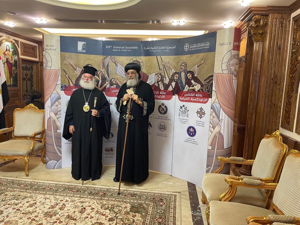 «Η συνέλευσή μας αυτή πραγματοποιείται κατά τη διάρκεια μιας πάρα πολύ κρίσιμης περιόδου κατά την οποία αναζωπυρώνεται τα μέγιστα η γεωπολιτική αντιπαράθεση μεταξύ Ανατολής και Δύσης που οδηγεί εκτός από την πολιτική και στην θρησκευτική αντιπαράθεση, η οποία ίσταται όπως τα ανηγμένα στόματα των θηρίων της Αποκαλύψεως με προοπτική δυσοίωνη για τους χριστιανούς μας», ανέφερε, μεταξύ άλλων, ο Πατριάρχης Αλεξανδρείας κ. Θεόδωρος, κατά τις εργασίες της 12ης Γενικής Συνέλευσης του Συμβουλίου Εκκλησιών Μέσης Ανατολής, που πραγματοποιήθηκαν στην Ιερά Μονή Anba Bishoy στην περιοχή Ουάντι Αλ Νατρούν της Αιγύπτου, τη Δευτέρα, 16 Μαΐου 2022.