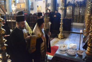 Τρισάγιο υπέρ αναπαύσεως των ψυχών των πεσόντων στον υπό εξέλιξη πόλεμο στην Ουκρανία, τέλεσε ο Οικουμενικός Πατριάρχης κ.κ. Βαρθολομαίος, αμέσως μετά την Θεία Λειτουργία του Σαββάτου των Ψυχών (26/02/2022). Δύο ημέρα μετά την έναρξη του πολέμου μεταξύ Ρωσίας – Ουκρανίας.