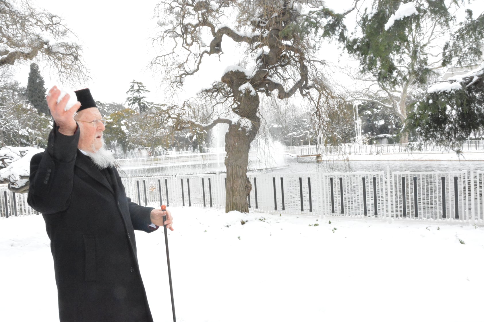 Περίπατος στο χιονισμένο πάρκο του Yildiz από τον Πατριάρχη Βαρθολομαίο