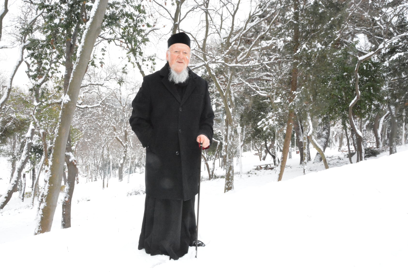 Περίπατο στο χιονισμένο πάρκο του Yildiz πραγματοποίησε σήμερα ο Οικουμενικός Πατριάρχης Βαρθολομαίος.