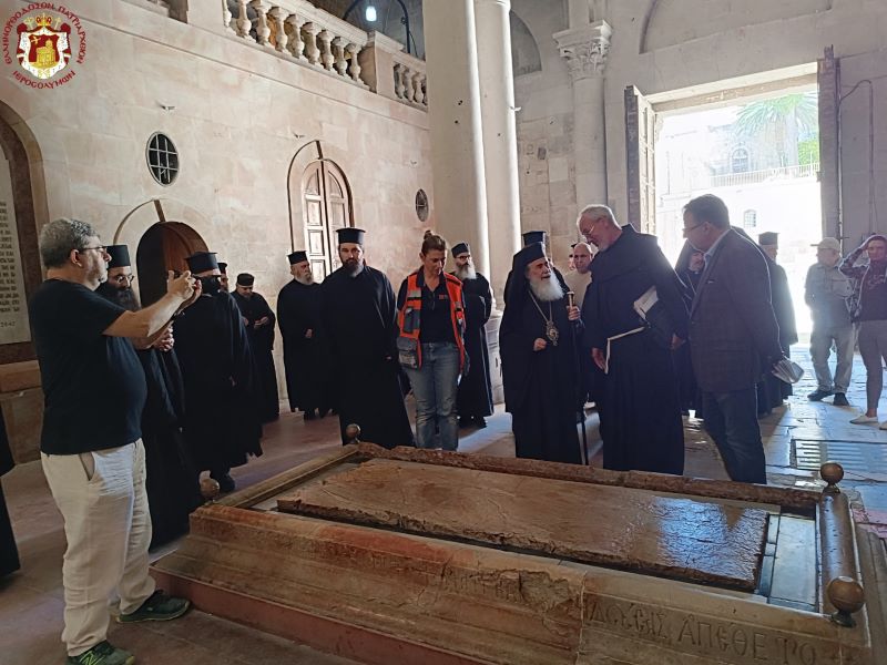 Τόν Φραγκισκανόν Ἱερομόναχον π. Ντομπρομήρ διά θέματα τῶν συντηρητικῶν ἐργασιῶν εἰς τόν Ναόν τῆς Ἀναστάσεως.
