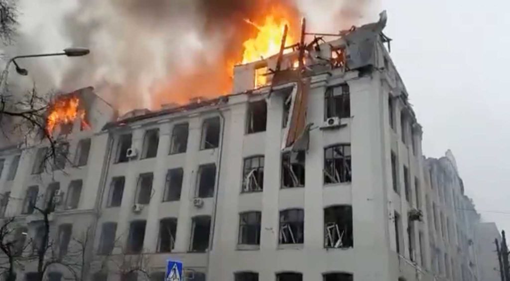 Η εικόνα εκαταστροφή! Συντρίμμια, κτίρια που καίγονται ύστερα από τους βομβαρδισμούς της νύχτας που πέρασε και ενώ η επίθεση της Ρωσίας σε όλη την Ουκρανία συνεχίζεται, με τον Βλαντιμίρ Πούτιν να οργίζεται για την αργή εξέλιξη του πολέμου και για την καθυστέρηση κατάληψης σημαντικών πόλεων.ίναι μια: απόλυτη