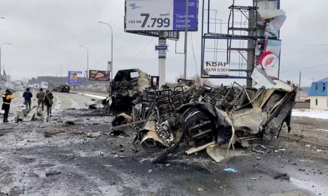 «Το κύριο σώμα της μεγάλης οχηματαπομπής που προελαύνει προς το Κίεβο παραμένει περισσότερα από 30 χιλιόμετρα μακριά από το κέντρο της πόλης καθώς καθυστερεί λόγω της σταθερής ουκρανικής αντίστασης, μηχανικής βλάβης και κυκλοφοριακής συμφόρησης», αναφέρει το βρετανικό υπουργείο Άμυνας σε επικαιροποιημένη αναφορά των υπηρεσιών πληροφοριών.