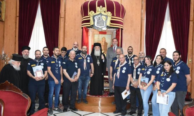 1. Τήν ἀντιπροσωπείαν τῶν Προσκόπων τῆς Ἱερουσαλήμ διά τήν ὑποβολήν εὐχῶν διά τήν ἑορτήν τοῦ Πάσχα καί αἴτησιν βοηθείας διά τάς δραστηριότητας αὐτῶν.