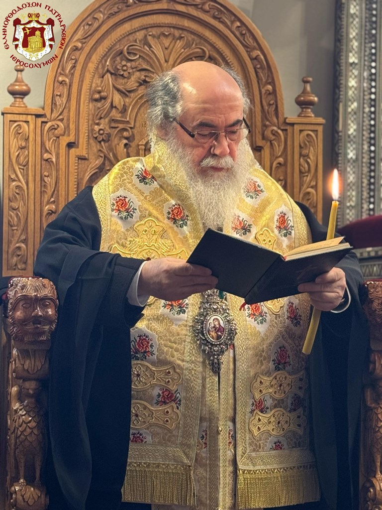 Τό ἑσπέρας τῆς Παρασκευῆς, 8ης / 21ης Φεβρουαρίου 2025, εἰς τόν Κεντρικόν μοναστηριακόν Ναόν τῶν Ἁγίων Κωνσταντίνου καί Ἑλένης καί εἰς τό πλαίσιον τοῦ Ψυχοσαββάτου τοῦ Τριῳδίου, μετά τήν Ἀκολουθίαν τοῦ Ἑσπερινοῦ ἐψάλη ὁ Κατανυκτικός νεκρώσιμος Κανών ὑπέρ ἀναπαύσεως τῶν ψυχῶν τῶν ἀοιδίμων Πατριαρχῶν, μακαριστῶν Ἀρχιερέων, Ἱερέων, Ἱεροδιακόνων καί μοναχῶν, μελῶν τῆς Ἁγιοταφιτικῆς Ἀδελφότητος, προεξάρχοντος τοῦ Μακαριωτάτου Πατρός ἡμῶν καί Πατριάρχου Ἱεροσολύμων κ.κ. Θεοφίλου, συνιερουργούντων τῶν Ἁγιοταφιτῶν Ἀρχιερέων καί Ἱερέων, ἔνθα ἐδιαβάσθησαν τά κόλλυβα τοῦ πρώτου ἐτησίου Ψυχοσαββάτου.