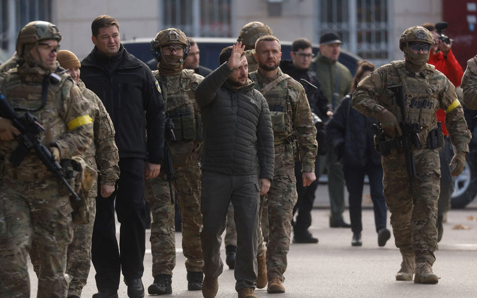Στη Χερσώνα μετέβη τη Δευτέρα ο πρόεδρος της Ουκρανίας Βολόντιμιρ Ζελένσκι, λίγες ημέρες αφότου αποσύρθηκαν από εκεί τα ρωσικά στρατεύματα κατοχής και η πόλη πέρασε εκ νέου υπό ουκρανικό έλεγχο.