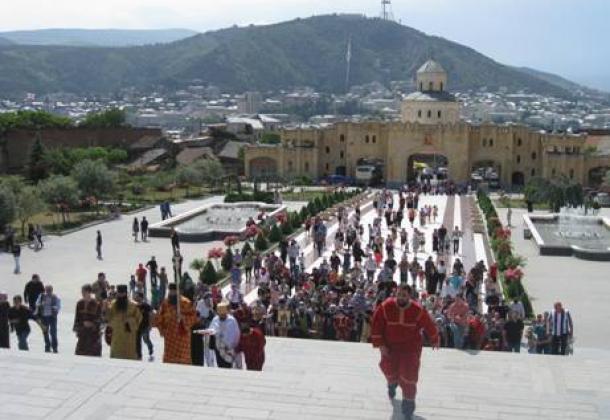 Μετά την υποδοχή, η αντιπροσωπεία κατευθύνθηκε στον Καθεδρικό Ναό της Τυφλίδας, οπου θα φιλοξενηθεί το Ιερό Λείψανο μέχρι της 2 Ιουνίου.