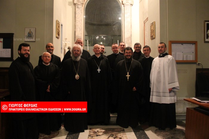Η επίσκεψη της ελληνικής αντιπροσωπείας στην Ρώμη ξεκίνησε με προσκύνημα στη βασιλική του Αποστόλου Παύλου «εκτός των τειχών». Τον επίσκοπο Φαναρίου και τους συνεργάτες του, υποδέχθηκε σε ιδιαίτερα θερμό κλίμα ο ηγούμενος της αδελφότητας των Βενεδικτίνων μοναχών που ζει στη Βασιλική ο οποίος προσωπικά ξενάγησε την ελληνική αντιπροσωπεία στον τάφο του Αποστόλου Παύλου.