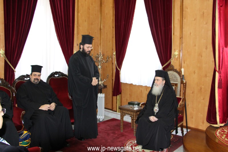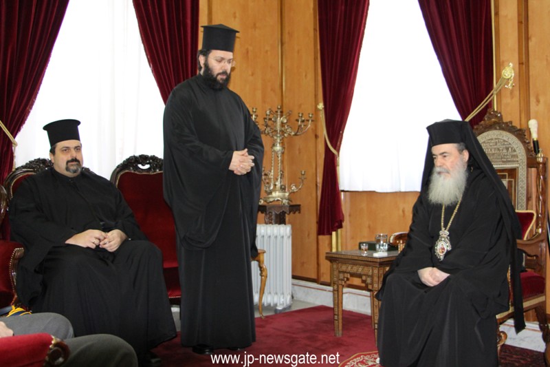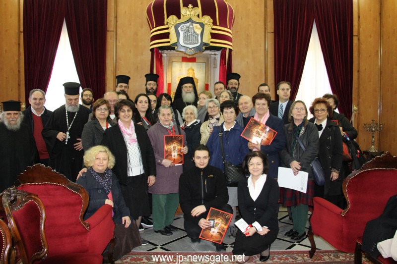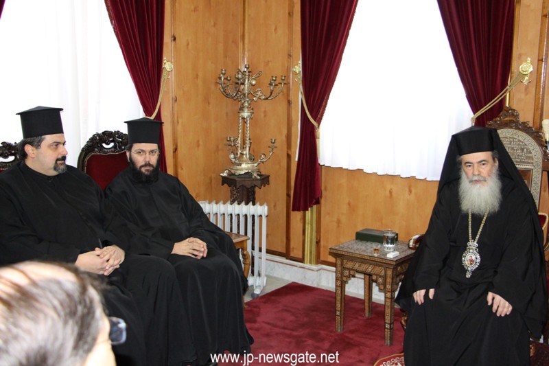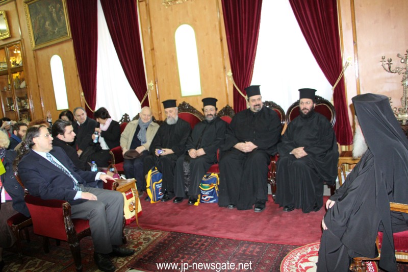 Ο Σεβασμιώτατο Μητροπολίτης Αυστροουγγαρίας κ. Αρσένιος και η προσκυνηματική ομάδα αυτού έγιναν δεκτοί από την Α.Θ.Μ. Πατριάρχη Ιεροσολύμων κ.κ. Θεόφιλο μετά Πατέρων Αγιοταφιτών.