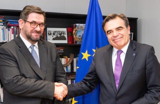 Σε ιδιαίτερα εγκάρδιο κλίμα, πραγματοποιήθηκε στις Βρυξέλλες συνάντηση εργασίας του Αντιπροέδρου της Ευρωπαϊκής Επιτροπής κ. Μαργαρίτη Σχοινά και του Γενικού Γραμματέα του Γραφείου της Ορθοδόξου Εκκλησίας παρά τη Ευρωπαϊκή Ενώση, Πρωτοπρεσβυτέρου Δρ. Κωνσταντίνου Κενανίδη.