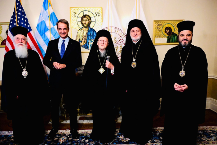 Στη Νέα Υόρκη, στα κεντρικά γραφεία της Ιεράς Αρχιεπισκοπής Αμερικής, πραγματοποιήθηκε την Τρίτη η συνάντηση του Πρωθυπουργού της Ελλάδας Κυριάκου Μητσοτάκη με την Αυτού Θειοτάτη Παναγιότητα τον Οικουμενικό Πατριάρχη κ. Βαρθολομαίο. Τον Πρωθυπουργό υποδέχθηκε θερμά ο Σεβασμιώτατος Αρχιεπίσκοπος Αμερικής κ. Ελπιδοφόρος.