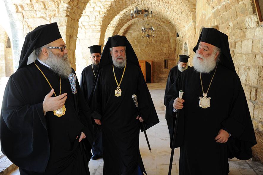 Σήμερα το μεσημέρι ο Πατριάρχης Αντιοχείας κ. Ιωάννης ξενάγησε τον Πατριάρχη Αλεξανδρείας κ. Θεόδωρο και τον Αρχιεπίσκοπο Κύπρου κ. Χρυσόστομο στους χώρους της Ιεράς Μονής της Κοιμήσεως της Θεοτόκου στο Μπαλαμάντ.