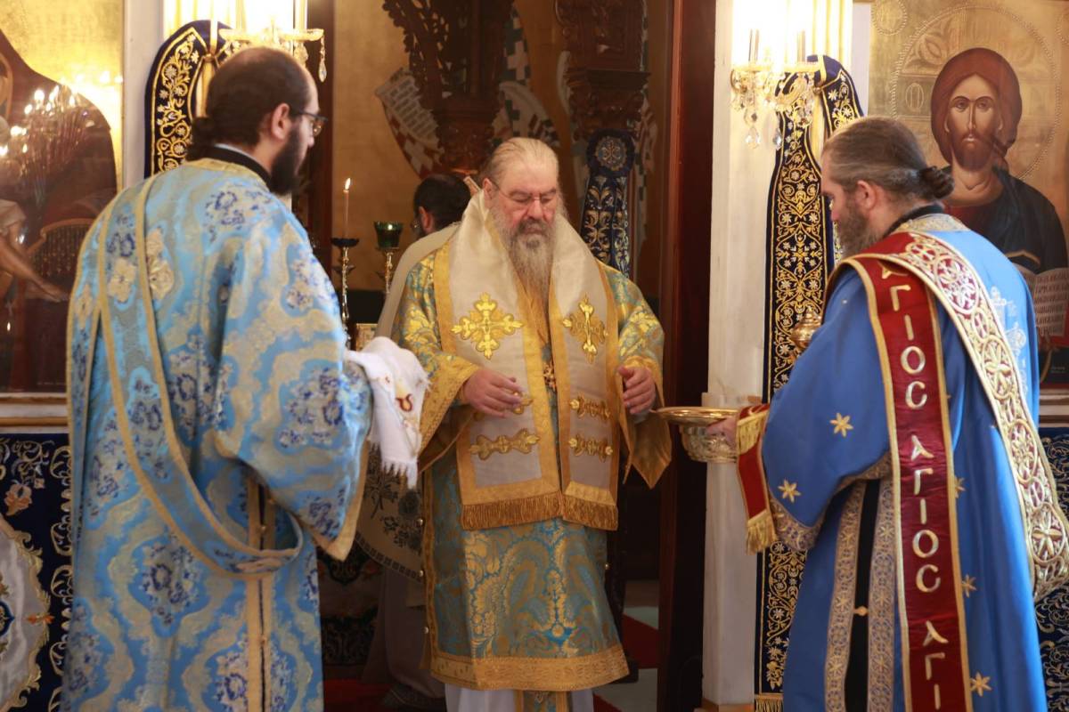 Ο Θεοφιλέστατος Επίσκοπος Αμαθούντος κ. Νικόλαος τέλεσε την Θεία Λειτουργία και τον Μέγα Αγιασμό στον ιερό ναό Αγίων Θεοπατόρων Ιωακείμ και Άννης. Μετά το τέλος της Θείας Λειτουργίας κατευθήνθηκαν εν πομπή στην αποβάθρα μπροστά από το ξενοδοχείο «Four Seasons» όπου έγινε και ο Αγιασμός των υδάτων.