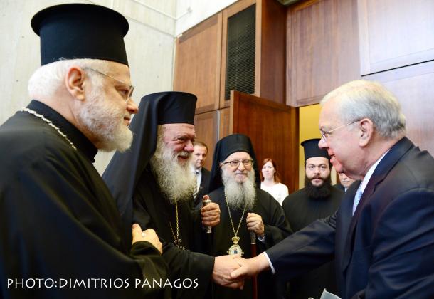 Από την πλευρά του, ο Αρχιεπίσκοπος Ιερώνυμος, ο οποίος συνοδευόταν από τον Αρχιεπίσκοπο Αμερικής Δημήτριο, το Μητροπολίτης Μεθόδιο και τους συνεργάτες του, ενημέρωσε το Δήμαρχο Βοστόνης για τη σημερινή κατάσταση στην χώρα μας και αναφέρθηκε στο έργο που επιτελεί η Αρχιεπισκοπή με σκοπό να στηριχθούν ευπαθείς ομάδες του Ελληνικού λαού, εκφράζοντας την αισιοδοξία του ότι «οι δυσκολίες θα ξεπεραστούν». Στο τέλος της συνάντησης αντηλλάγησαν δώρα.