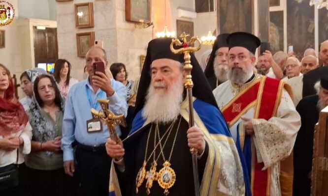 Εἰς τόν περικαλλῆ Ναόν τοῦ Γενεθλίου τῆς Θεοτόκου  εἰς Μπετζάλλαν, κτίσμα τοῦ 19ου αἰῶνος, διά θείας Λειτουργίας τῆς ὁποίας προεξῆρξεν, μετά τήν ὑποδοχήν Αὐτοῦ ὑπό τῶν Ἱερέων καί τῶν Προσκόπων ἡ Α.Θ.Μ. ὁ  Πατήρ ἡμῶν καί Πατριάρχης Ἱεροσολύμων κ.κ. Θεόφιλος, συλλειτουργούντων Αὐτῷ τοῦ Σεβασμιωτάτου Μητροπολίτου Καπιτωλιάδος κ. Ἡσυχίου καί τοῦ Σεβασμιωτάτου Ἀρχιεπισκόπου Κωνσταντίνης κ. Ἀριστάρχου, τῶν  Ἱερέων τῆς Κοινότητος, π. Μποῦλος, π. Ἰωσήφ καί π. Ἠλία, τοῦ Ἀρχιδιακόνου π. Μάρκου καί τοῦ Ἱεροδιακόνου π. Εὐλογίου, τῇ ἐπιμελείᾳ τοῦ Ἡγουμένου Ἀρχιμανδρίτου π. Ἰγνατίου, ψαλλούσης τῆς χορῳδίας τῆς Μπετζάλλας καί προσευχομένου πυκνοῦ ἐκκλησιάσματος ἐν χαρᾷ, ἀγαλλιάσει καί εὐλαβείᾳ, παρουσίᾳ τοῦ Ἕλληνος Προξένου κ. Πέτρου Ἀναγνωστάρα καί ἄλλων μελῶν τοῦ Ἑλληνικοῦ Γενικοῦ Προξενείου, τοῦ κ. Τζιχάντ Χέρ, ἀντιπροσώπου τοῦ Προέδρου τῆς Ἀνωτάτης Παλαιστινιακῆς Ἐκκλησιαστικῆς Ἐπιτροπῆς κ. Ράμζη Χούρη.