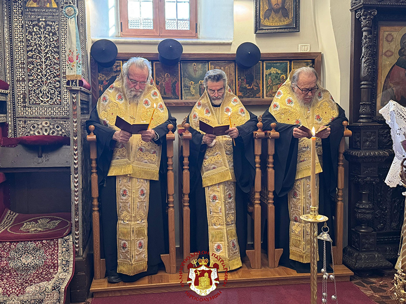 Τοῦ συντελοῦντος τά μέγιστα εἰς τήν προετοιμασίαν τῆς ἑορτῆς τῶν Χριστουγέννων καί εἰς τήν σωτηρίαν τῶν ψυχῶν ἡμῶν Ἱεροῦ Μυστηρίου τούτου προεξῆρξεν ἡ Α.Θ.Μ. ὁ Πατήρ ἡμῶν καί Πατριάρχης Ἱεροσολύμων κ.κ. Θεόφιλος ,συνιερουργούντων μετ᾽ Αὐτοῦ ἕξ Ἀρχιερέων καί Ἱερέων, ἵνα ὧσιν ἑπτά τόν ἀριθμόν, ὡς ὁρίζει τό Τυπικόν τῆς Ἐκκλησίας.