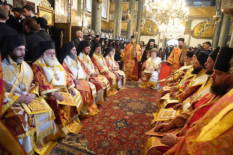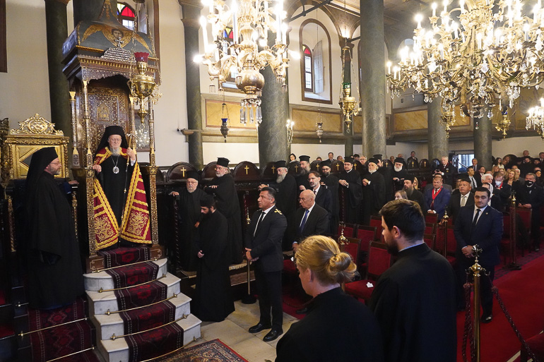 Συμπροσευχήθηκαν οι Σεβ. Μητροπολίτες Γέρων Χαλκηδόνος κ. Εμμανουήλ, Γέρων Πριγκηποννήσων κ. Δημήτριος, Αρχιεπίσκοπος Ανθηδώνος κ. Νεκτάριος, Επίτροπος του Παναγίου Τάφου στην Πόλη, ο Πανοσιολ. Αρχιμανδρίτης κ. Γεώργιος Χριστοδούλου, Αρχιγραμματεύς της Ιεράς Συνόδου της Εκκλησίας της Κύπρου, εκ προσώπου του Τοποτηρητού του Αρχιεπισκοπικού Θρόνου, Πανιερ. Μητροπολίτου Πάφου κ. Γεωργίου. Επίσης, οι Σεβ. Ιεράρχες Βρυούλων κ. Παντελεήμων, Δωδώνης κ. Χρυσόστομος, Φιλαδελφείας κ. Μελίτων, Μυριοφύτου και Περιστάσεως κ. Ειρηναίος, Μύρων κ. Χρυσόστομος, Θυατείρων και Μεγάλης Βρεταννίας κ. Νικήτας, Ικονίου κ. Θεόληπτος, Σάρδεων κ. Ευάγγελος, Γουίνιπεγκ κ. Ιλαρίων, Κρήτης κ. Ευγένιος, Κυδωνιών κ. Αθηναγόρας, Πισιδίας κ. Ιώβ, Σηλυβρίας κ. Μάξιμος, Ίμβρου και Τενέδου κ. Κύριλλος, Ρεθύμνης και Αυλοποτάμου κ. Πρόδρομος, Προύσης κ. Ιωάκείμ, και Γαλλίας κ. Δημήτριος, οι Θεοφιλ. Επίσκοποι Ρηγίου κ. Ειρηναίος, Αλικαρνασσού κ. Αδριανός, Αραβισσού κ. Κασσιανός, Τράλλεων κ. Βενιαμίν, Δορυλαίου κ. Δαμασκηνός, Δαφνουσίας κ. Σμάραγδος, Ξανθουπόλεως κ. Παΐσιος και Κνωσού κ. Μεθόδιος, ο Εξοχ. Πρέσβης της Ελλάδος στην Άγκυρα κ. Χριστόδουλος Λάζαρης, Κληρικοί, Μοναχοί και Μοναχές, εκπρόσωποι χριστιανικών κοινοτήτων της Πόλεως, Άρχοντες Οφφικιάλιοι της Μεγάλης του Χριστού Εκκλησίας υπό τον Γενικό Γραμματέα της Αδελφότητός τους “Παναγία η Παμμακάριστος”, Εντιμολ. κ. Κωνσταντίνο Δεληκωσταντή, Άρχοντα Διδάσκαλο του Γένους, οι Γενικοί Πρόξενοι της Ελλάδος και της Ουκρανίας στην Πόλη, Ευγεν. κ. Γεωργία Σουλτανοπούλου, και Εντιμ. κ. Roman Nedilskyi, καθηγητές και μαθητές Ομογενειακών Σχολείων της Πόλης, και πλήθος πιστών από την Πόλη, και το εξωτερικό.