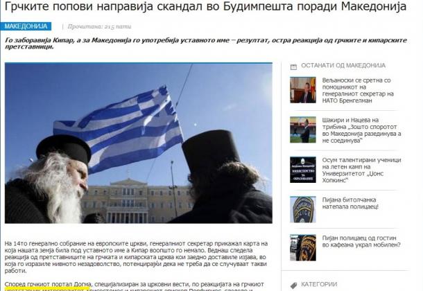 Σε ανταπόκριση της από την Αθήνα, η ανταποκρίτρια του μεγαλύτερου τηλεοπτικού σταθμού των Σκοπίων KANAL 5, Σ. Ριστόβσκα αναμετέδωσε το ρεπορτάζ του Πρακτορείου Εκκλησιαστικών Ειδήσεων «Δόγμα» καταγράφοντας τις αντιδράσεις των εκπροσώπων τόσο της Ελλαδικής όσο και της Κυπριακής Εκκλησίας.