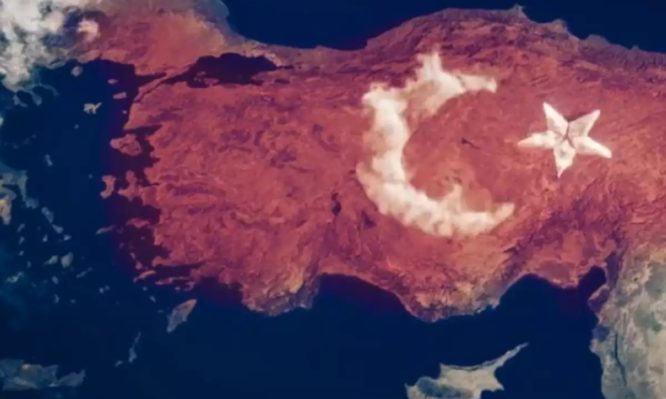 Συγκεκριμένα, στο τηλεοπτικό σποτ του Ρετζέπ Ταγίπ Ερντογάν δείχνει χαμογελαστούς πολίτες να ποζάρουν δίπλα στην τουρκική σημαία ή φιλώντας την. Στο τέλος παρουσιάζεται ένας χάρτης, όπου φαίνονται οι περιοχές που ανήκουν στην Τουρκία. Ωστόσο, πέραν των εδαφών της Τουρκίας, παρουσιάζονται ως τουρκικά τα πλήθος ελληνικών νησιών, αλλά και μέρος της Δυτικής Θράκης.