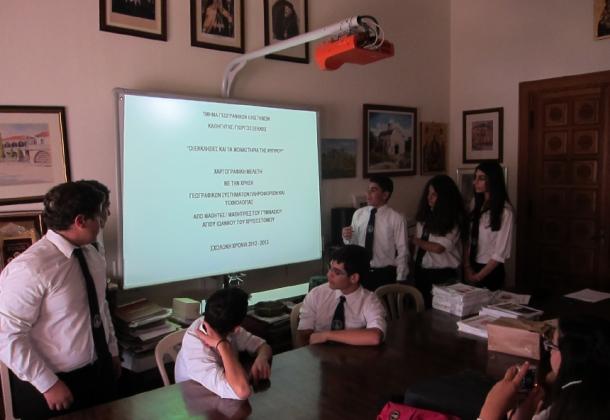 Τη χαρτογραφική τους μελέτη για τους Ιερούς Τόπους της Κύπρου παρουσίασαν στην Ιερά Αρχιεπισκοπή Κύπρου μαθητές του Γυμνασίου Αγίου Ιωάννου Χρυσοστόμου .